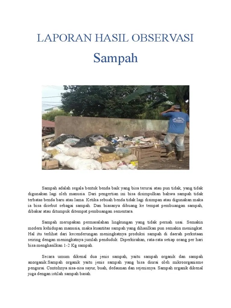 Struktur Teks Laporan Hasil Observasi Tentang Sampah : 3 Contoh Teks Laporan Hasil Observasi Tentang Sampah - Struktur teks laporan hasil observasi tentang sampah.