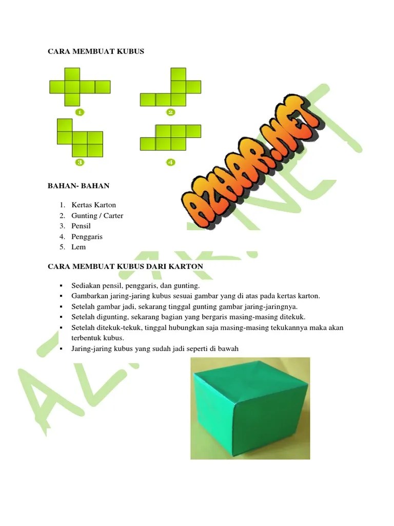 Kubus ini dibuat dengan menggunakan alat dan bahan yaitu kertas karton, pensil, membuat kubus dari karton. 23 amir akan membuat sebuah kubus dari kertas karton.